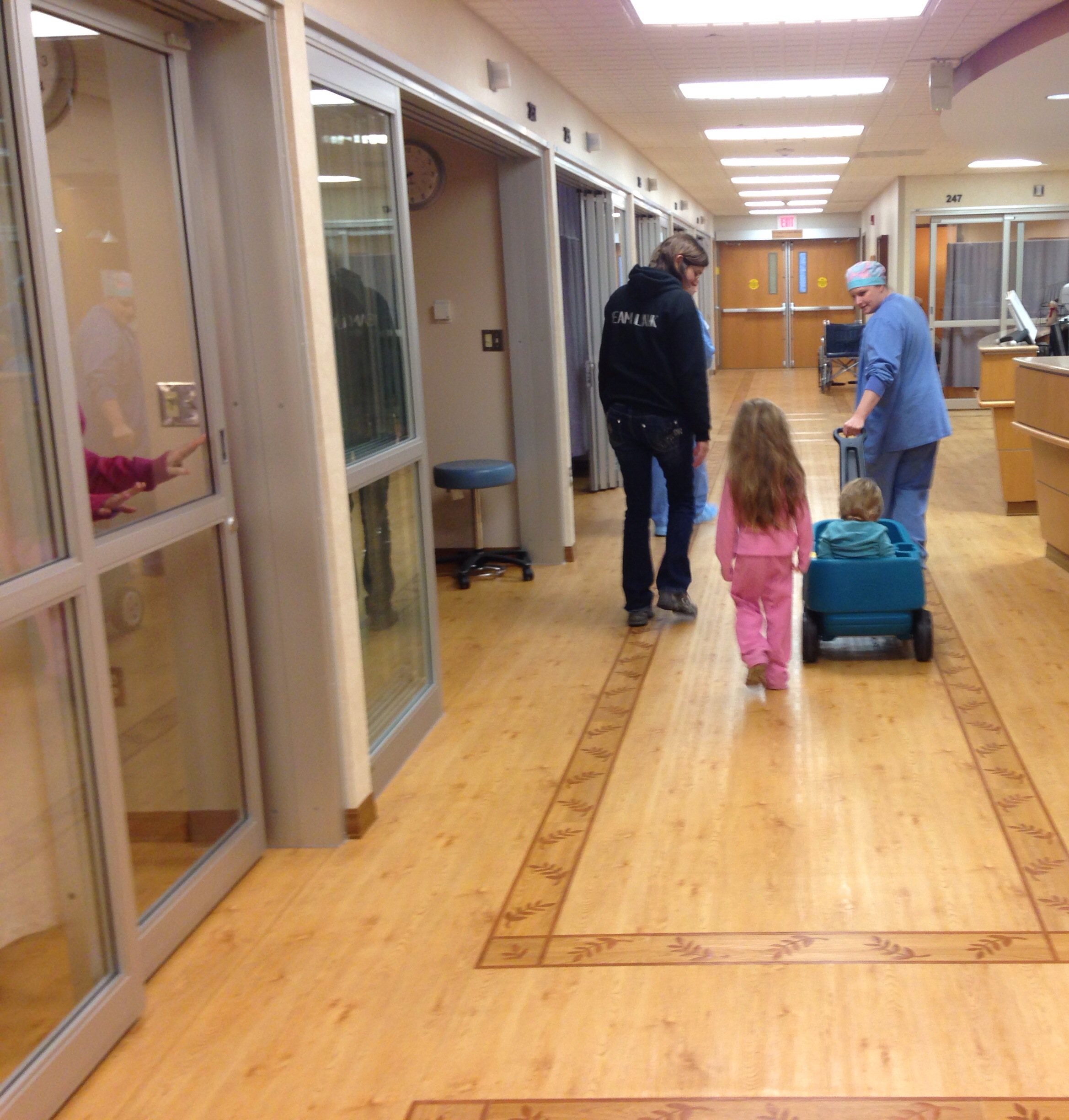 The nurses came in and I put him in a little wagon and Asher did not fight it, but simply kept his head down the entire walk down the hall. I think that was worse than if he would have been screaming. Thankfully before I could barely post an update on Facebook, the doctor came in to say that he was done. He did comment that Asher was a “serious little boy” and then laughed so I can imagine Asher must’ve been giving them one of his looks.