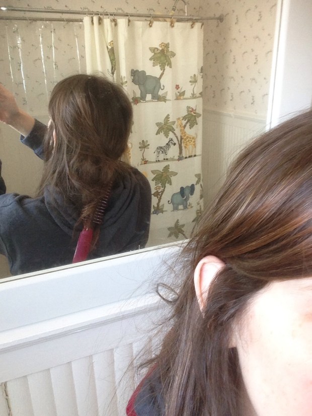 Later on in the day, Leah decided that she wanted to play beautician and got all of her equipment needed. I of course was distracted and not paying any attention until Leah tells me “the brush is stuck”. I reached back and felt the biggest knot, realizing she had used the new brush she picked out at the store when she was with daddy…a pretty ROUND brush! I think any lady knows that when using round brushes you must be VERY careful to avoid getting that dang thing wrapped up in the hair! I tried over a half hour to get that stupid brush out of my hair before panic set in because I was to be leaving within the hour to take Leah to dance….or maybe just to get myself a haircut! I had a vision of the embarrassment I would feel if I had to go down to the salon with a brush dangling from my head asking them to cut it out. Thankfully Skyler got home from school and was able to work her magic and within about 15 minutes my hair was bristle free!!!