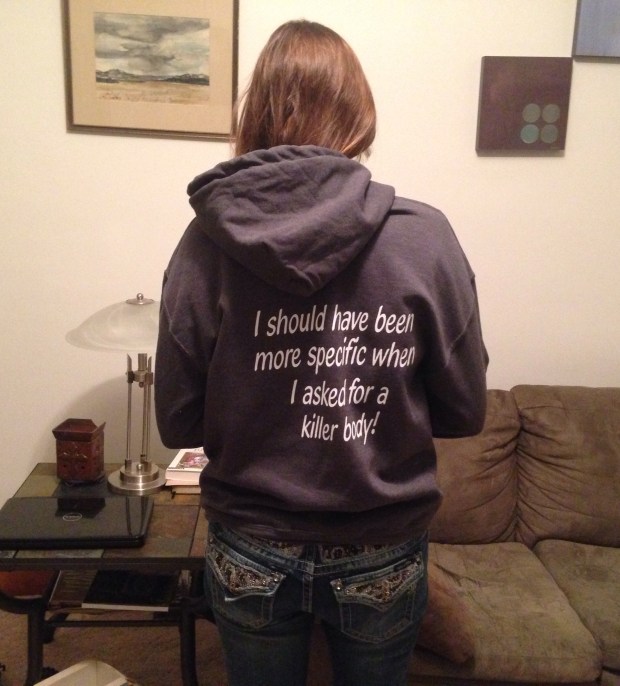 Just message me if you are interested in buying one…the sweatshirt saying is mine though….I can’t help it, I crack myself up sometimes! 😉