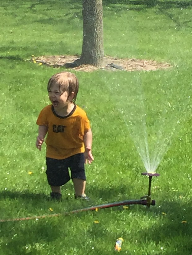 Finally by Sunday the weather was warm enough that we were able to get the sprinkler out and have some fun! Asher absolutely loved following his sister’s lead!