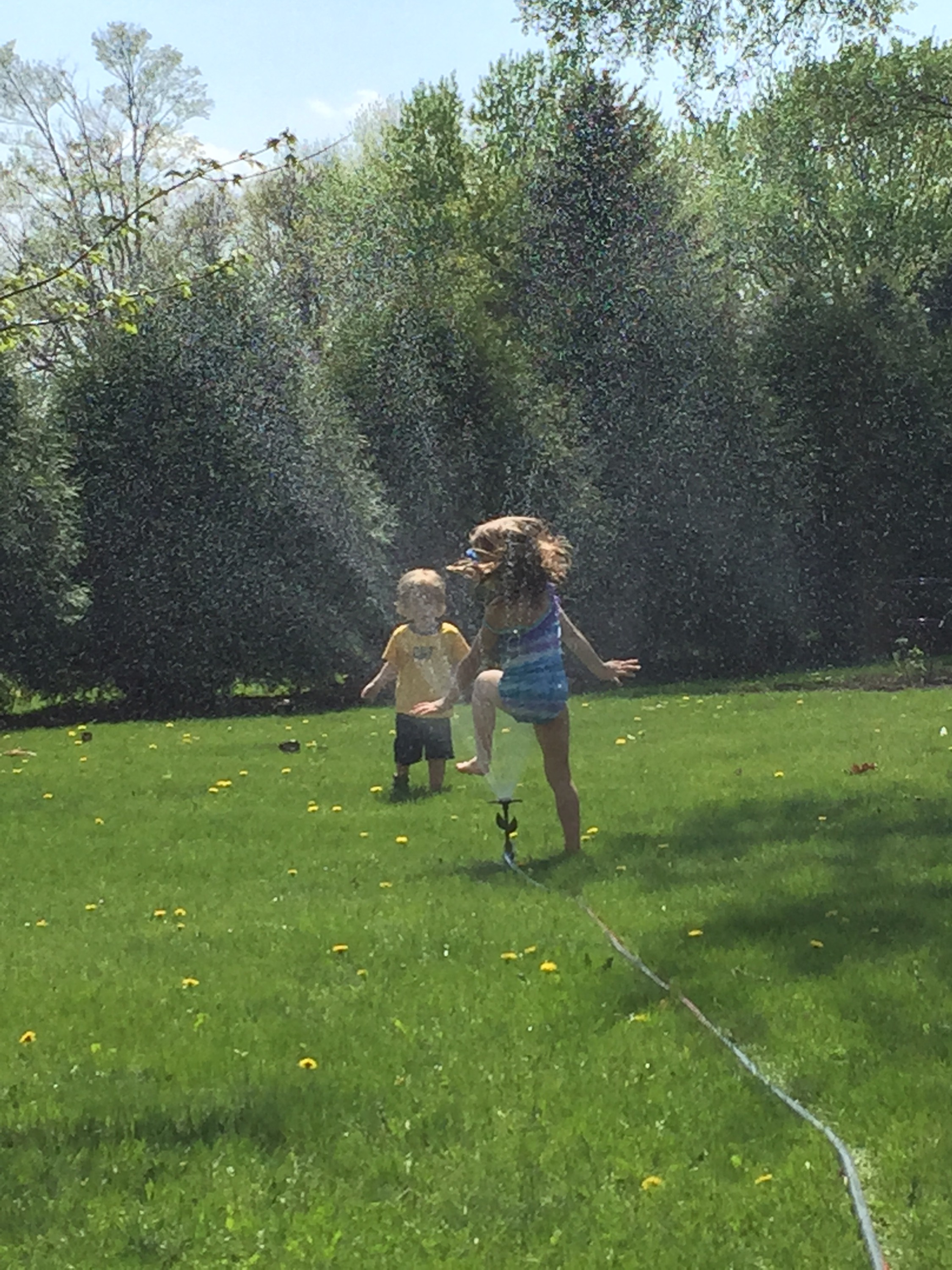 Finally by Sunday the weather was warm enough that we were able to get the sprinkler out and have some fun! Asher absolutely loved following his sister’s lead!