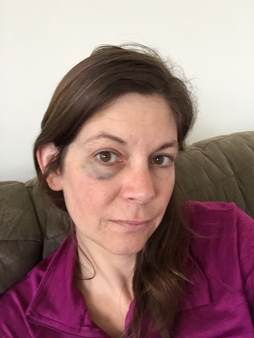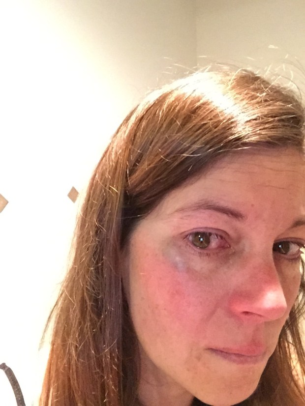 And then Friday came around, the big night for showtime but first a day of work and school! Asher was really excited about his new shoes and while I was putting them on him, he decided to headbutt me…right in the eye and right on the bone. Of all times….it has to be on one of our busiest weekends! One reason plavix and kids do not mix as my eye instantly began to bruise!