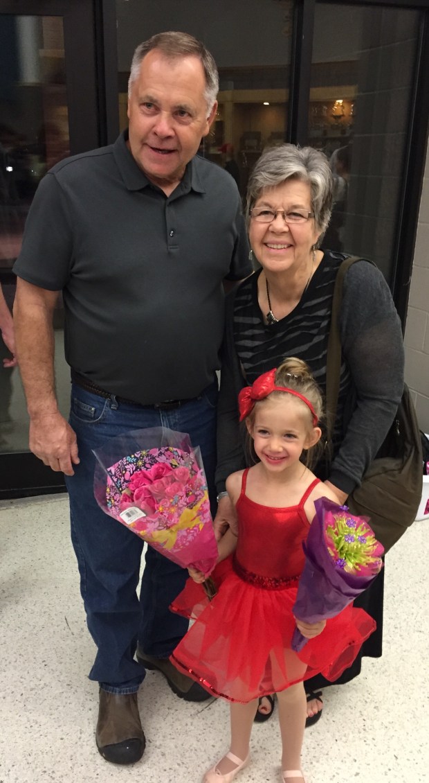 Proud mom watching Skyler in band and volleyball, Nathan in orchestra and football, and now our little Leah in dance recitals! We are also fortunate that we have family close by so all the grandparents were able to come watch Leah…and boy did she love getting flowers! I told my father in law I wasn’t going to blog this but the pictures were too good and we are so thankful that Grandpa and Grandma Lalk as well as Grandpa Steve and Grandma Vicky were able to come. It really made Leah happy knowing they were all there just to watch her!