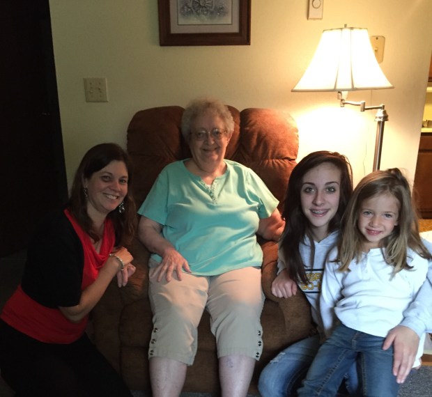 Leah, Skyler and I then tagged along to go see my grandmas who were pleasantly surprised as we did not tell them we would be coming along with my parents. As we crawled in to the back of the car the girls got excited for a road trip!