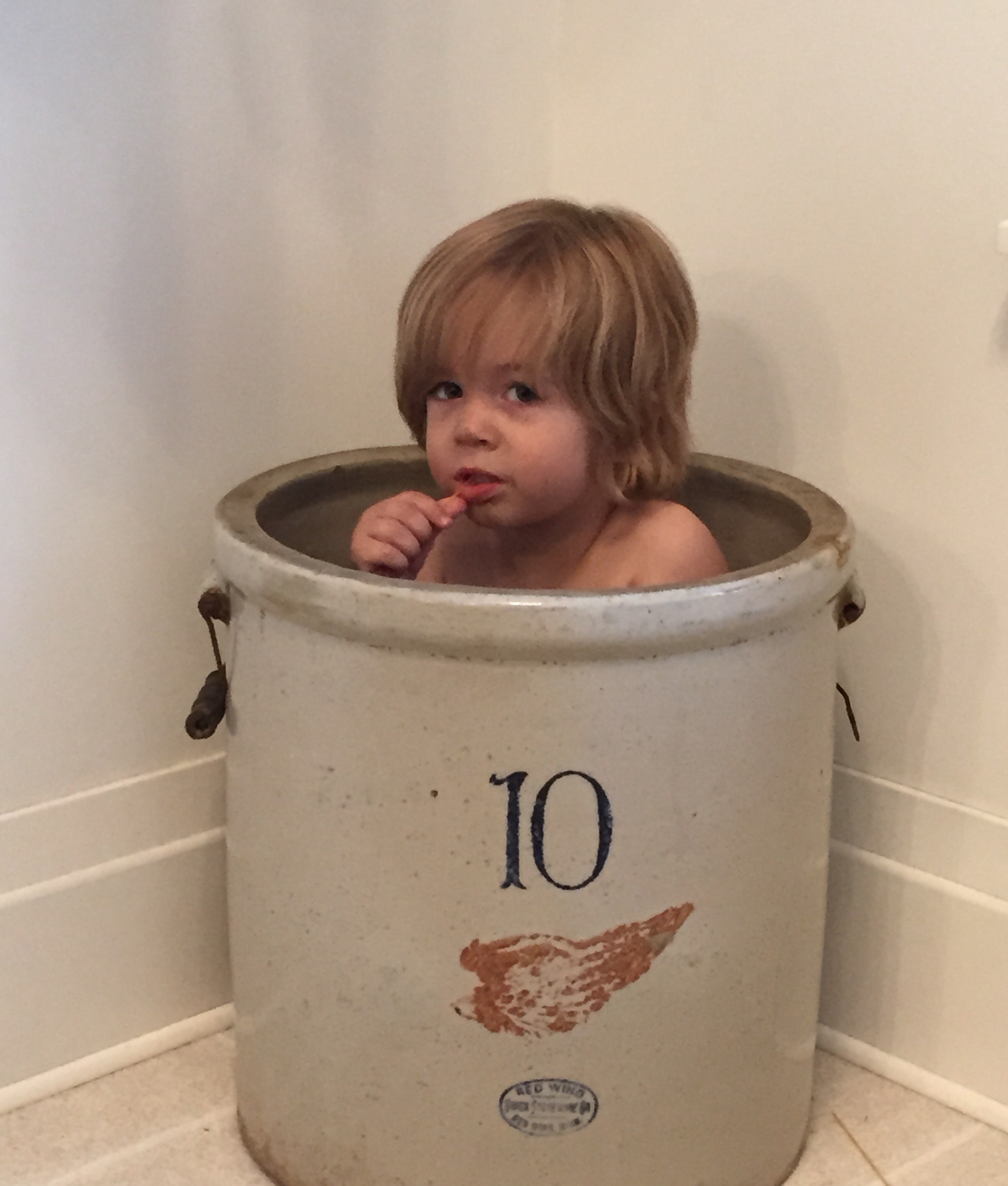So, remember how I had just said Tim had made the suggestion that he do everything outside and I take care of everything inside?! Well, as I am MOWING tonight, I can’t help but snap a picture of him in action outside…while I’m MOWING…