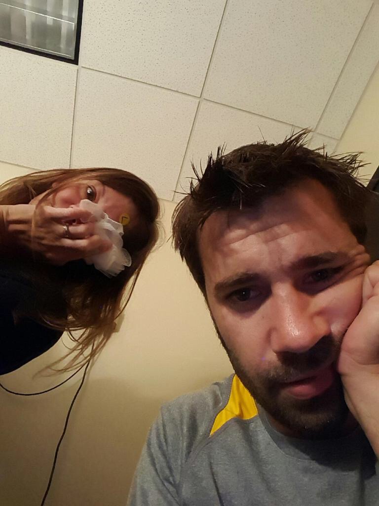 Tim working on selfies right before the doctor came back in…