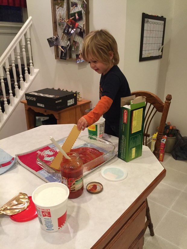 Once Tim, Nathan and Skyler left to go do chores over at the farm, Asher helped me prepare dinner…
