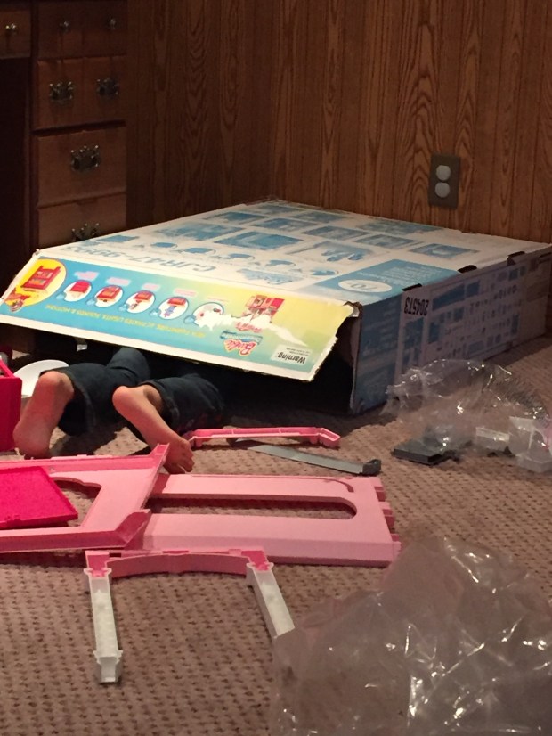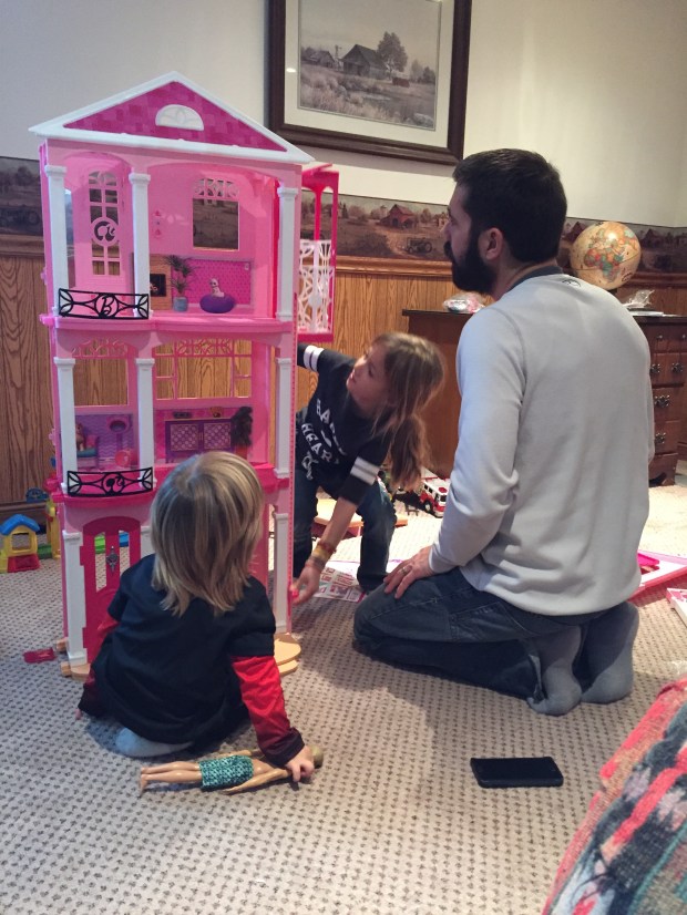 And Leah was ecstatic to get her Barbie dream house. The kids were even nice enough to help dad put it together…