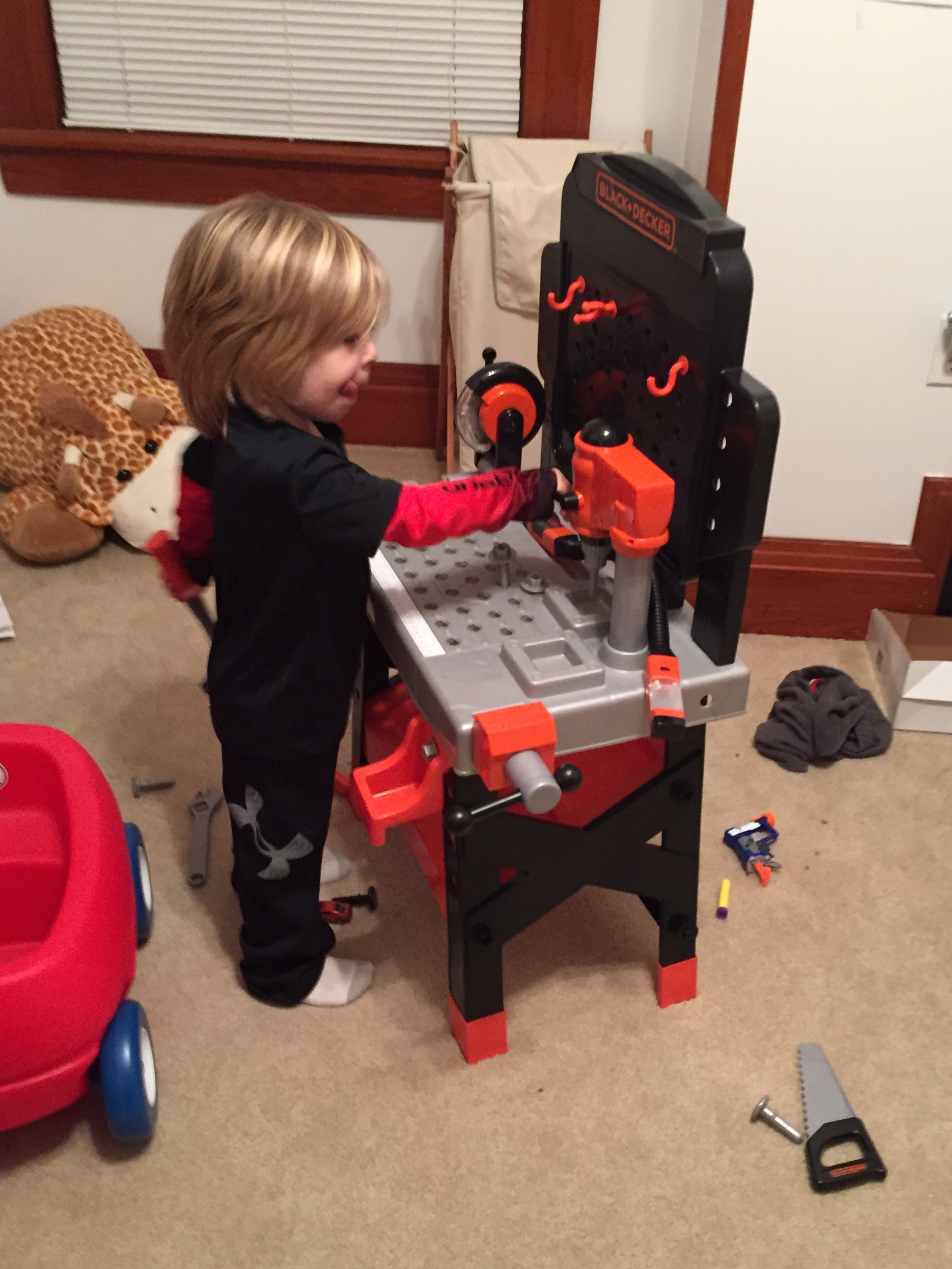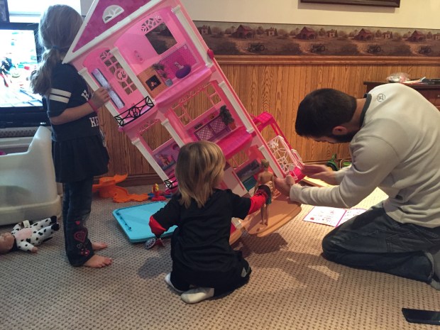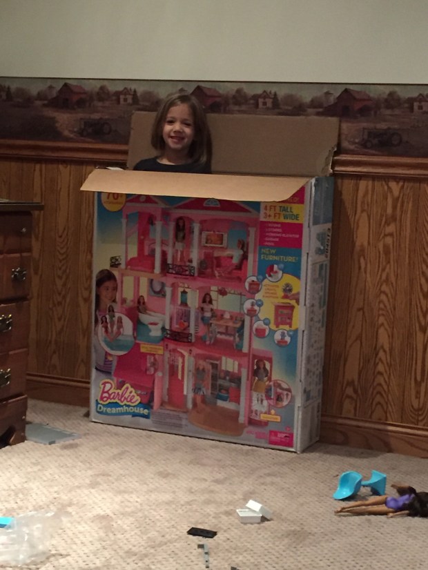 And Leah was ecstatic to get her Barbie dream house. The kids were even nice enough to help dad put it together…