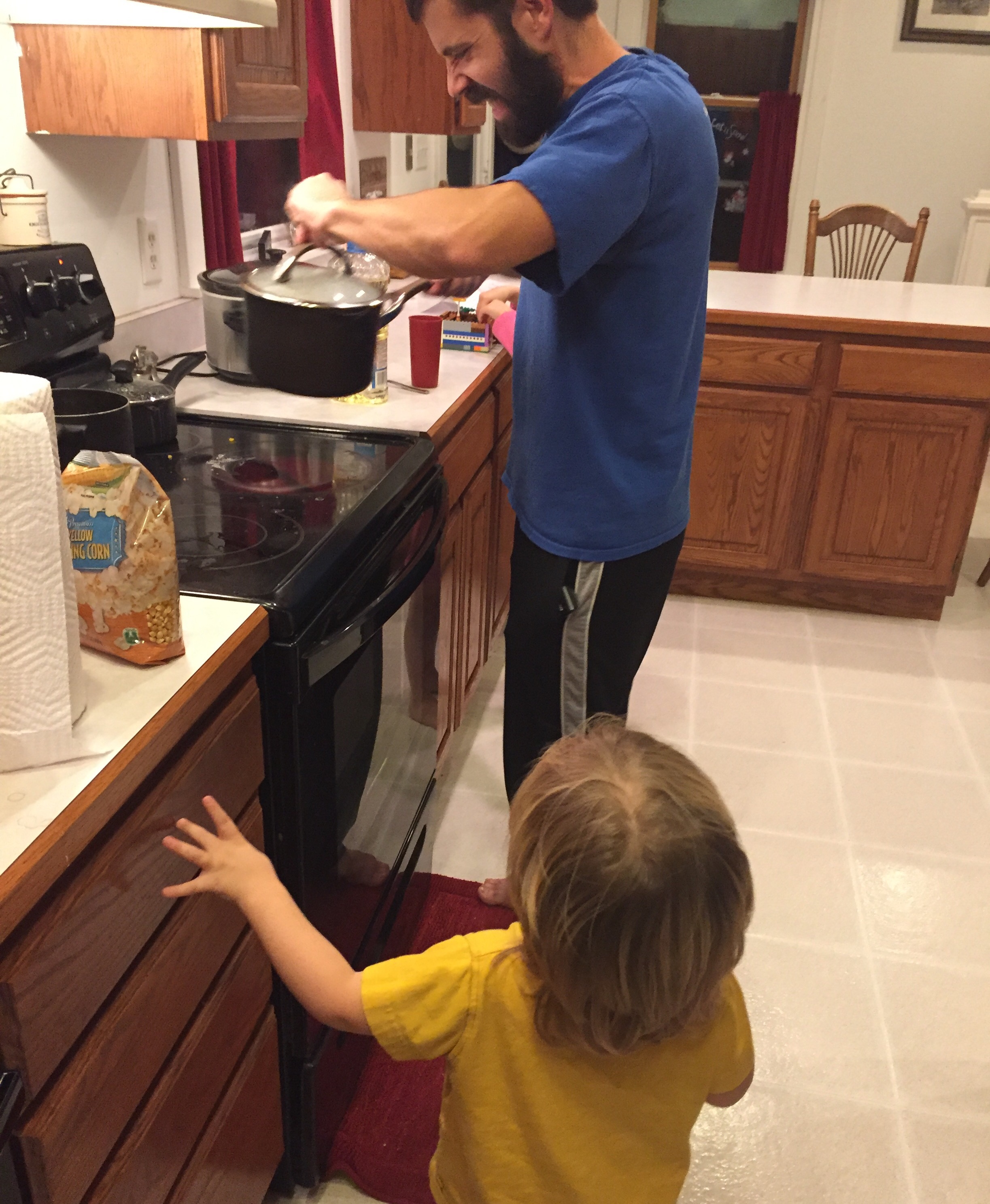 And while we already do a pretty good job of eating healthy…we really are trying to improve some of our eating habits including healthier popcorn, which we watched in amazement as Tim really put some muscle in to it…ππ
