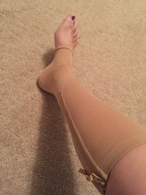 Today Tim informs me that he walked in to our bedroom last night, the smell of insulin in the air because my pump was unhooked and there I was spread across the bed sleeping high in the air on all of my pillows, including Leah’s huge giraffe pillow that takes up half the bed…and my legs with the compression socks were sticking out from beneath the blanket!