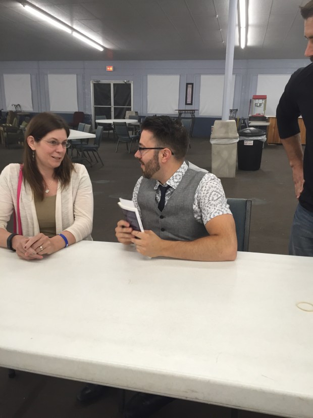 So anyway, even though I had intentions of handing out my book, I of course chickened out! Tim and mom pushed me to give my book to him and well, I’m not the assertive type so my mom saw the sound guy and went to ask if he worked with Danny which he did. I was set to just have my mom give my book to him…to give to Danny! Haha! But no, he informed my mom that Danny would be coming out to sign autographs so I could give my book to him personally! Noooo! Tim and my mom pressured me, saying really I had nothing to lose and I would not get this opportunity again! As Tim and I waited in line…
