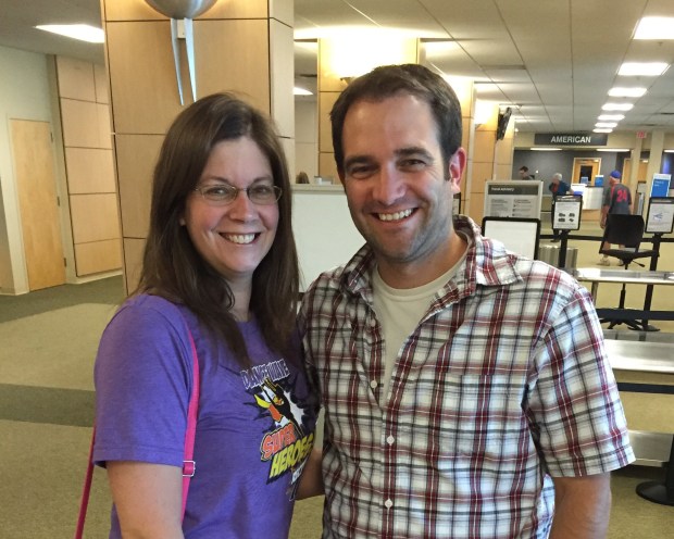 With a bad back and four kids…go figure…we were later than planned and Ryan and Sarah were all ready to board when we arrived! And when I could not understand the lip movement or gestures my brother was saying to me through the glass…