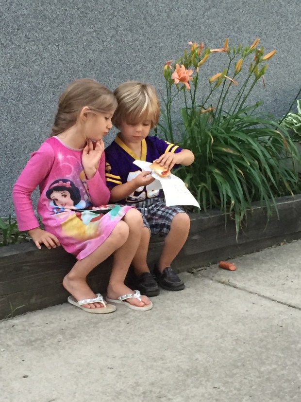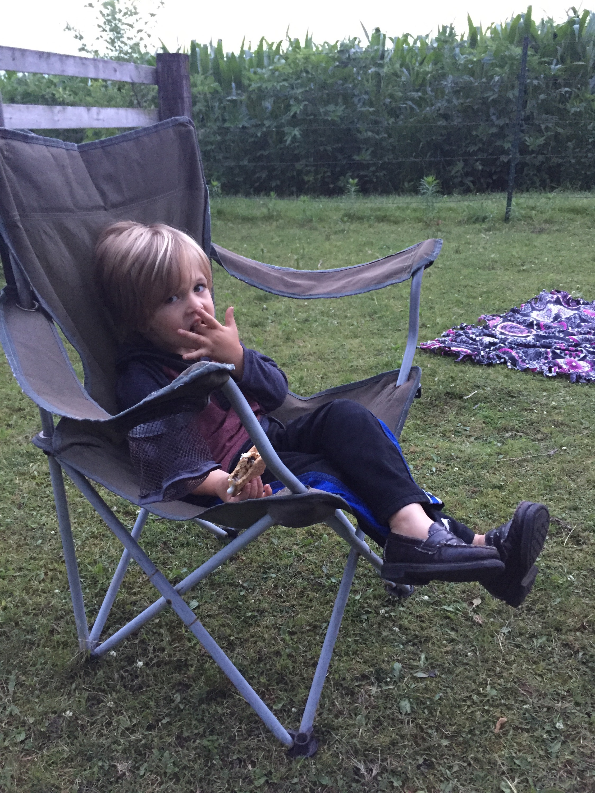 We also got invited to a bonfire as some of Tim’s family were back home visiting from out of state. Once we arrived all four kids were off and running! It’s nice when they have kids, other than their siblings, to play with. It also gives me a break from chasing after them!πThere was a serious game of kickball going on so I just watched from the sidelines and visited with the cooler people who weren’t playing!ππ