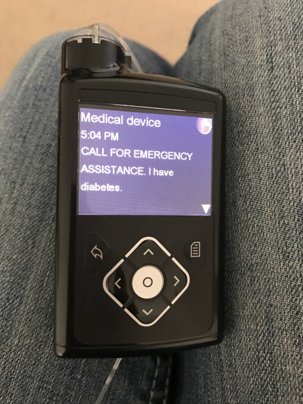 But, since it is new, I have had a lot of inconsistent readings which has led to too much insulin and I have dropped down into the 30s…which again results in loud beeping and vibrating as the warning flashes across my screen…