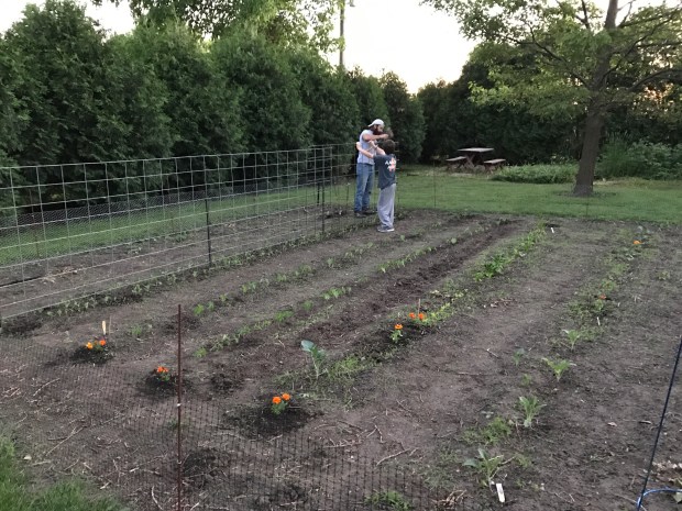 I did just about everything for the garden this year! I tilled it, I planted the seeds in rows, which may be a little crooked but hey, the first time I ever did it by myself. Haha! I even put up a little fence around the entire garden to keep the bunnies out…and last year, I had never even made it outside due to all of my health issues.