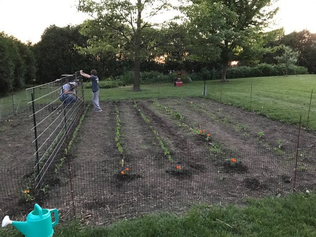 The gratitude continued as I made the family dinner, was able to drive Leah to dance and picked up a few groceries. Once everyone was home from all of the nightly activities, we spent the remainder of the evening outside. As I watched Nathan and Tim put up fence in between his peas…