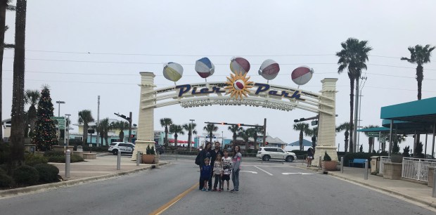 And while I wasn’t too sure how New Year’s Eve would turn out…it ended up being the highlight of our trip! The Panama City Beach beachball drop…10,000 beach balls would be dropped in the streets at 8pm! We had heard this event had brought up to 50,000 people in the past so I was very hesitant to go with the young kiddos even though it was designed for families. We reviewed strict rules that Leah and Asher were to be with us at all times, no roaming ahead of us and always holding on to our hand. Pier Park was just down the road from us so we walked down plenty early!