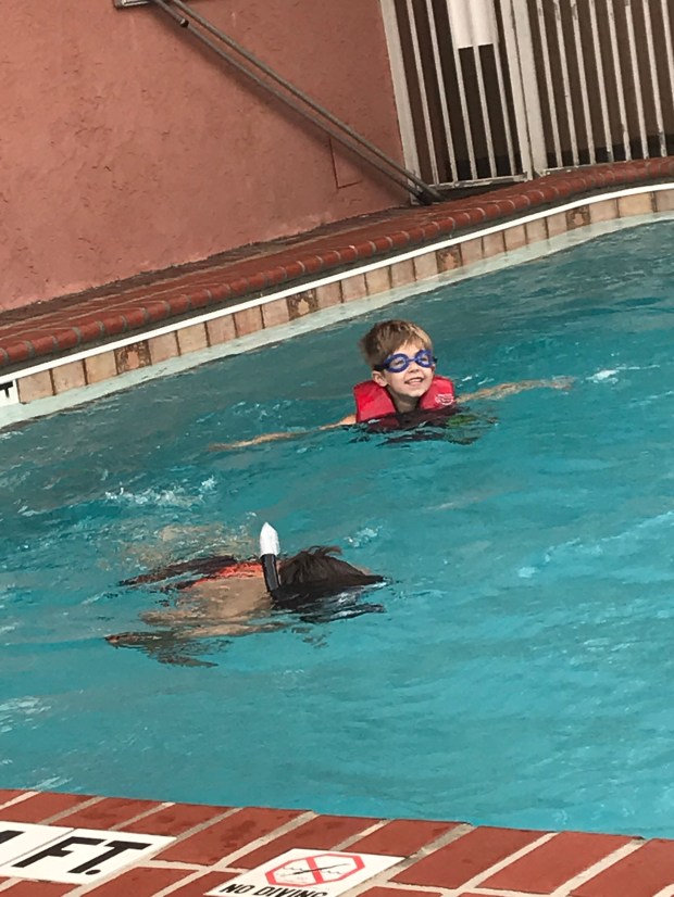 Kids did a lot of swimming once we found a hotel outside of Nashville…