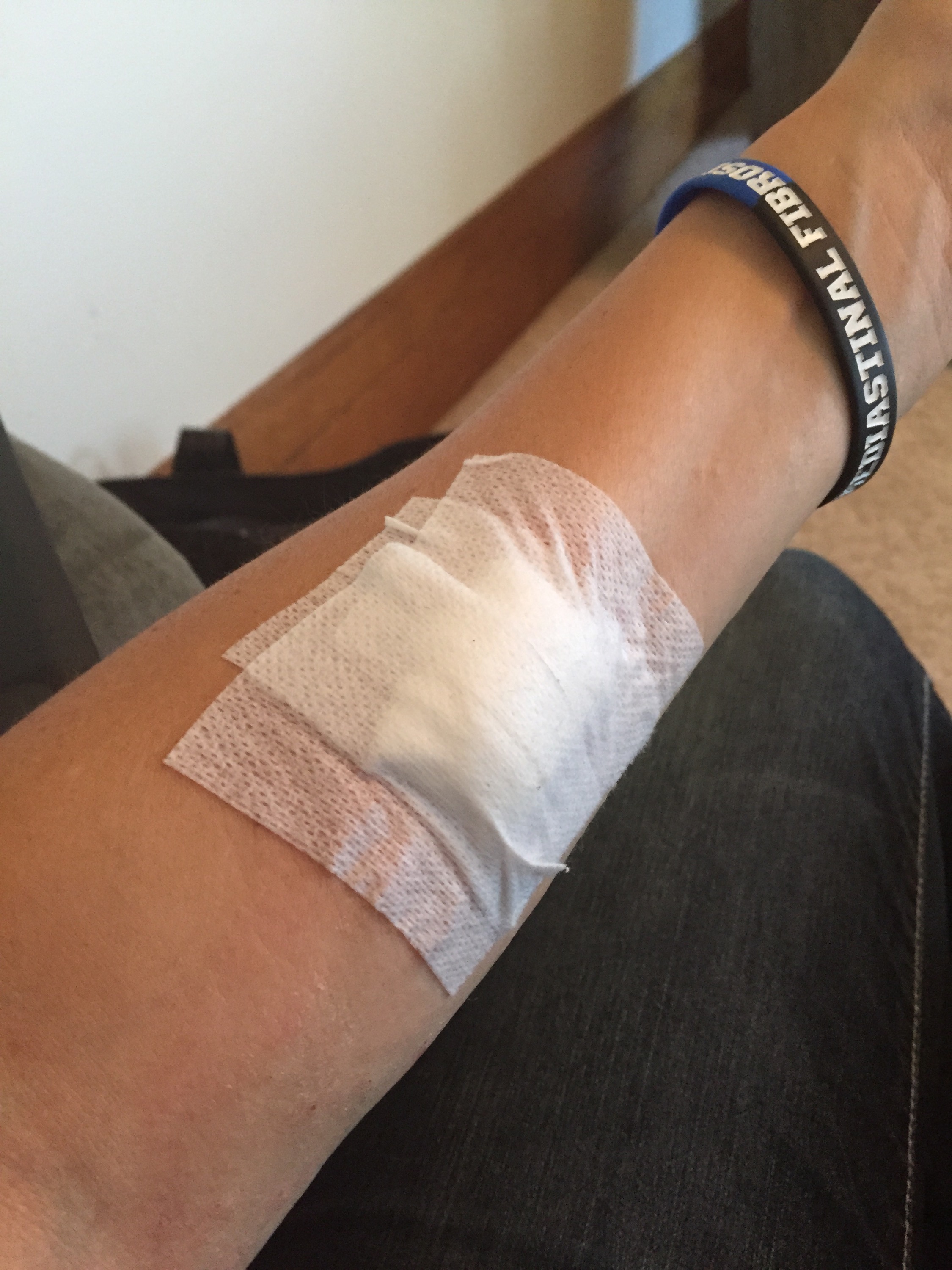 I started with dermatology and while my hands and arms looked awful from the rash I tend to get on occasion, I was proud to tell him my fingernails looked better. After reviewing pictures from the last time I was there in March though…the doctor said my nails really weren’t any better. Darn! Again, they were fascinated by my skin and decided to scrape some spots and run it under the microscope, but nothing was found. Still intrigued, they decided to do a punch biopsy to see if that would help them be able to determine the reason why my skin and fingers get so bad.
