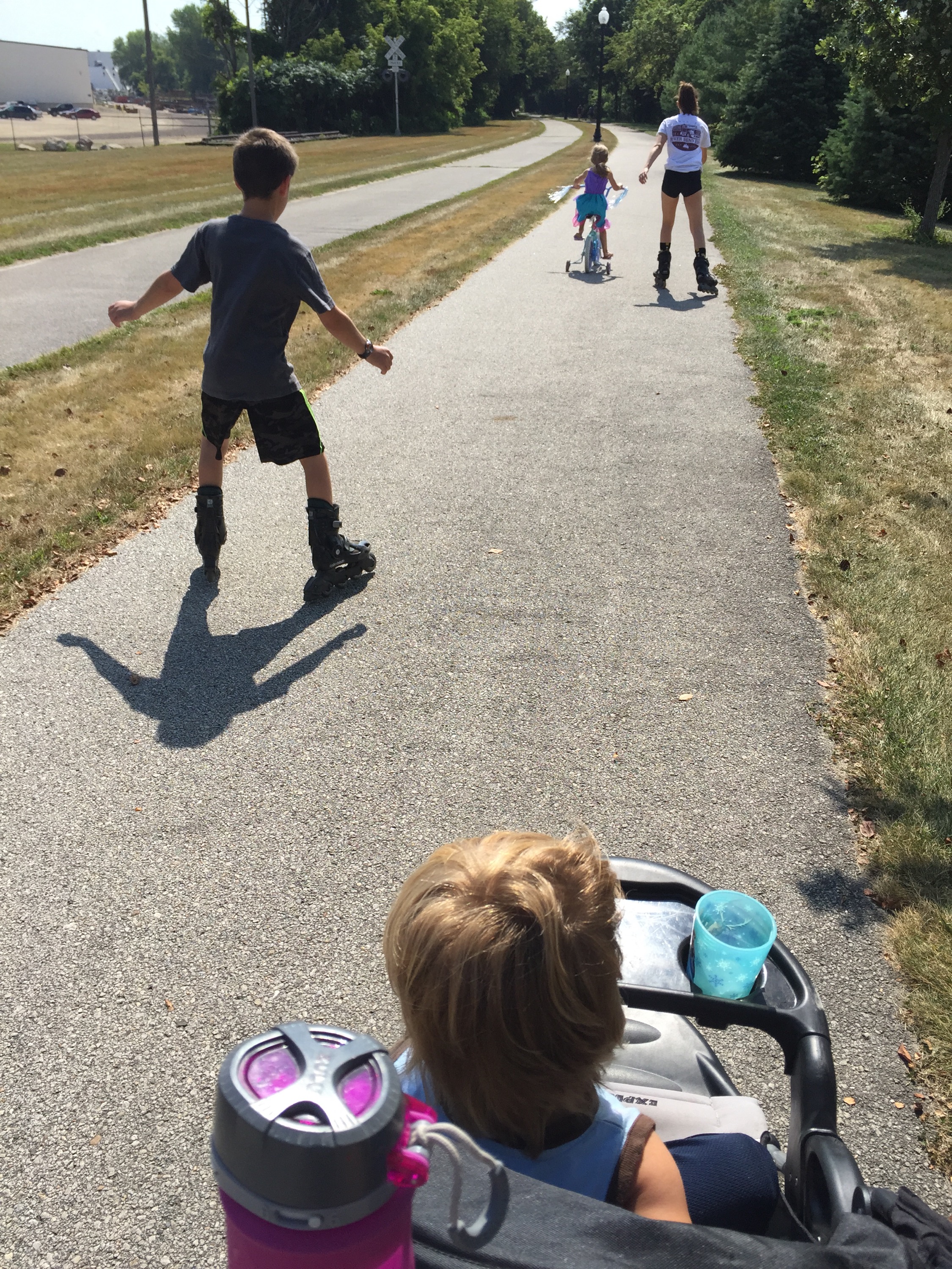 Funny how I signed up for a 5k then shortly after, I was bombarded with medical appointments. Well today was my day to get back on track with exercise and the kids sure did keep me motivated! Skyler and Nathan put on their rollerblades while Leah rode her bike and I pushed Asher in his stroller down the bike trail.